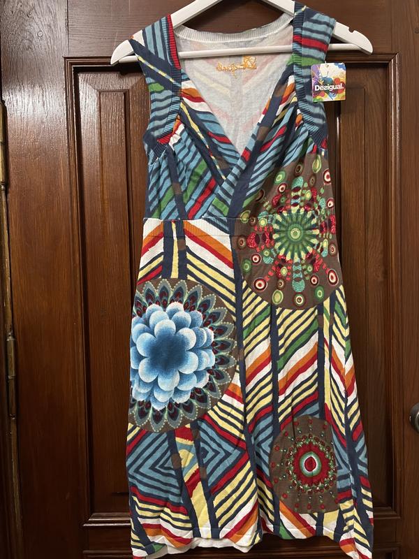 Платье Desigual. Размер М, маломерит, реально на S. Новое, есть небольшой дефект ( последнее фото, можно подшить). ПОГ 41 см, ПОТ 38 см, ПОС 46 см, длина 89 см. Эластичное, легко тянется.