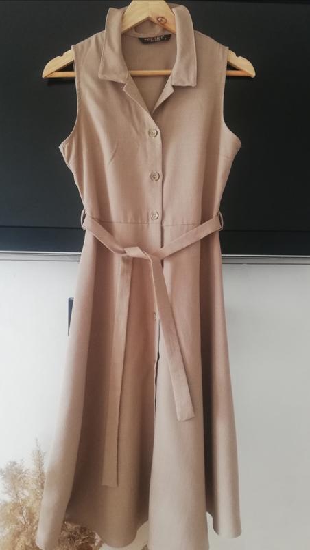 Очень стильное ,актуальное платье на лето от Perry. В кофе молоком цвете с золотой ниткой еле заметной. Смотрится вау. Верх по фигуре низ струится есть поясок. В размере С. Состав 80%viscoza 15%poliester 5%elastan Дл-105см Пог-44см Пот-38см Идельная.
