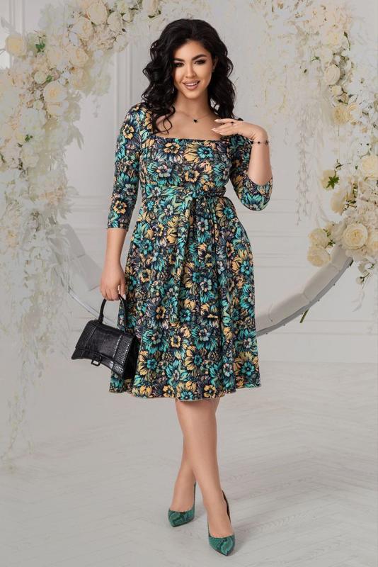 Сукня Модель № 7293-1 Цена 470 грн Размер 50-52 Тканина : трикотаж ГАРНАЯ РАСТЯЖНОСТЬ Длина платья : 115 см. Длина рукава : 45 см. Стильное, элегантное платье. Ткань приятная на ощупь, высокого качества не кашлатится. Юбка платья пышного покроя, пояс идет в комплекте из основной ткани Данные