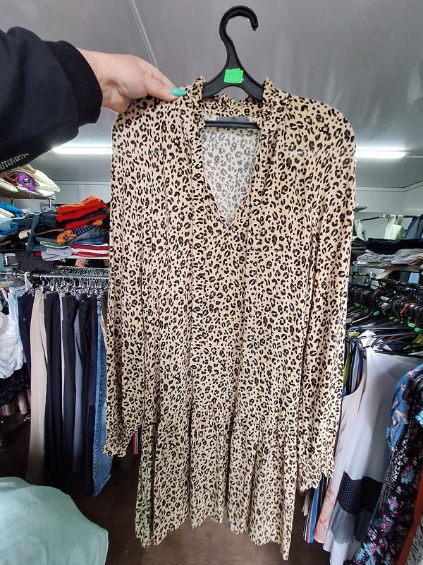 бирка срезанная, но 100%вискоза.очень портная, нижняя оборка, сзади на талии резиночка,красивый ворот и очень красивые рукавчики.пог.47 пот.39+49пос.53 длина89 рукав от горловины 75
