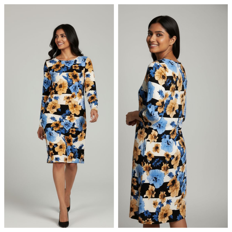 Платье миди в цветочный принт Marks&Spencer большой размер р. 18 (р. 2XL) Эластичная ткань, внутри подкладка. Хорошо тянется. Платье новое с бирками. Замеры: - длина от плеча 108 см - ПОГ 55 см (тянется до 61 см) - рукав 61 см - ПОТ 47 см (тянется до 55 см) - ПОБ 54 см (тянется до 61 см)