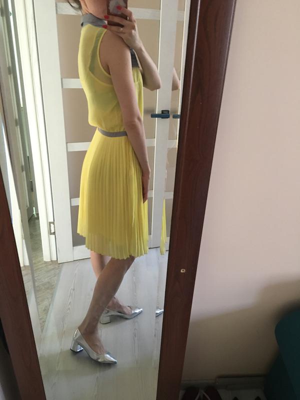 Яркое платье треедового жёлтого цвета с серыми вставками. Одевалось пару раз, состояние идеальное.