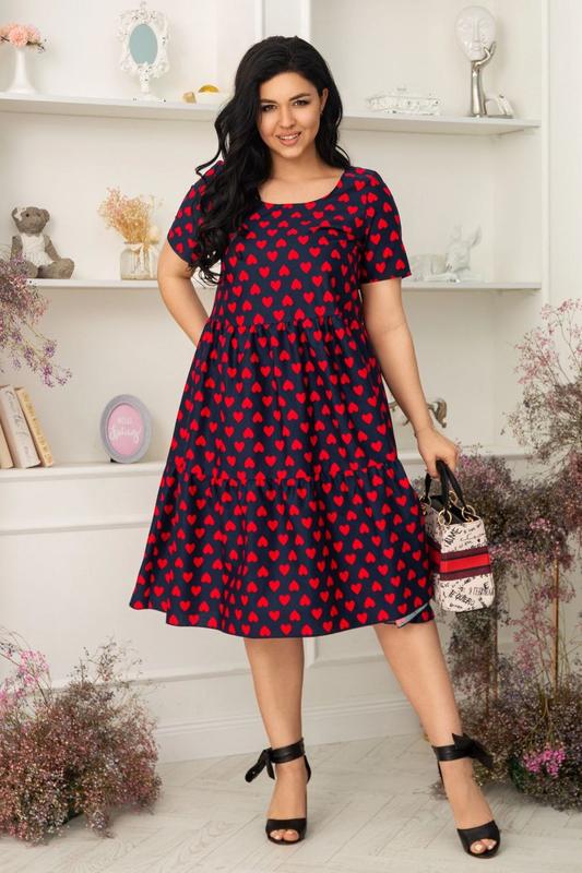 Сукня Модель № 7321-1 Цена 590 грн Размер : 46-48; 50-52; 54-56; 58-60 Тканина : котон Длина платья : 112 см. Длина рукава : 26 см. Стильное платье свободного покроя. Ткань приятная на ощупь, высокого качества не кашлатится. Данные