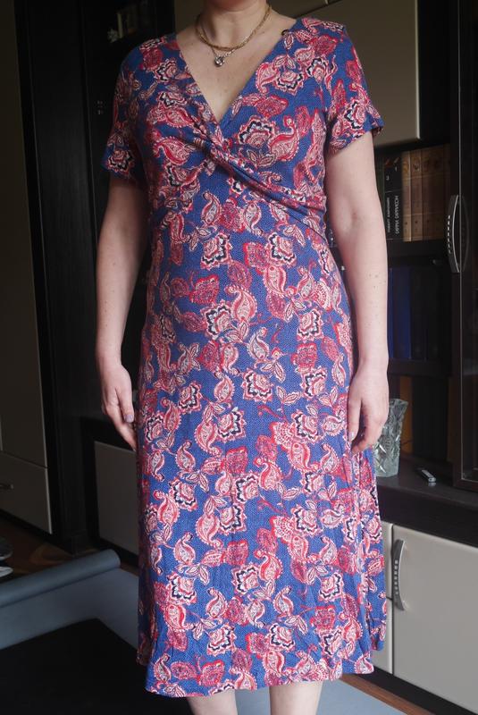 Удобное комфортное платье для повседневного ношения. Ткань [хорошего качества приятная на ощупь. В составе 95% вискозы. Хоть ткань и натуральная, она не мнется и платье не нужно гладить, что является огромным преимуществом. Состояние идеальное без ньюансов. Размер указан 44(16). Наш размер 50. Ориентируйтесь по замерам. Ткань хорошо тянется. пог 52 пот 49 поб 53 длина 109 № 79