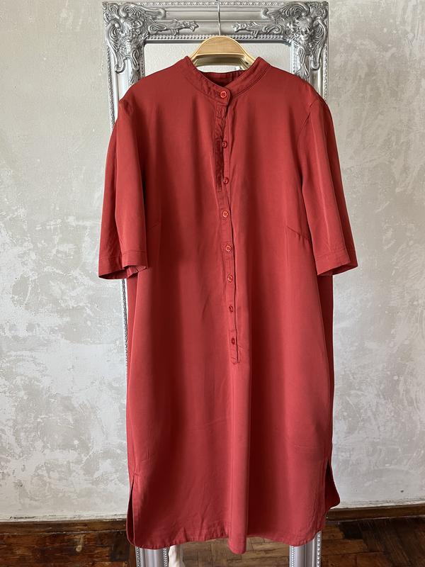 Платье из натуральной ткани, оно, как бритвенные брюки!замеры: пог-44,5см, низ(на начале разрезов)-54,2см,низ-51,5см,плечи-38см,длина рукава-28,8см, длина по спине от плеча-89,5см;на рост 165-170