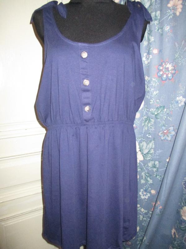 платье темно-синего цвета.50 хлопок.50 полиэстер.ПОГ 61.ПОТ 45.на талии резинка.ПОБ 67.длина 94см
