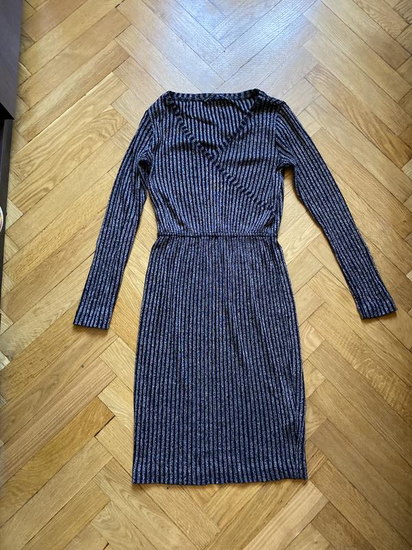 Платье серое в серебряную полоску Стан - идеальный