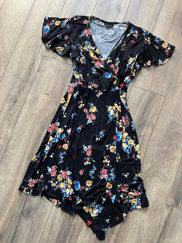 прекрасное летнее платье миди в цветочный принт, указано размер 16, но одета с пояском на m, подойдет и на l, xl, на все вопросы с радостью ответят)))
