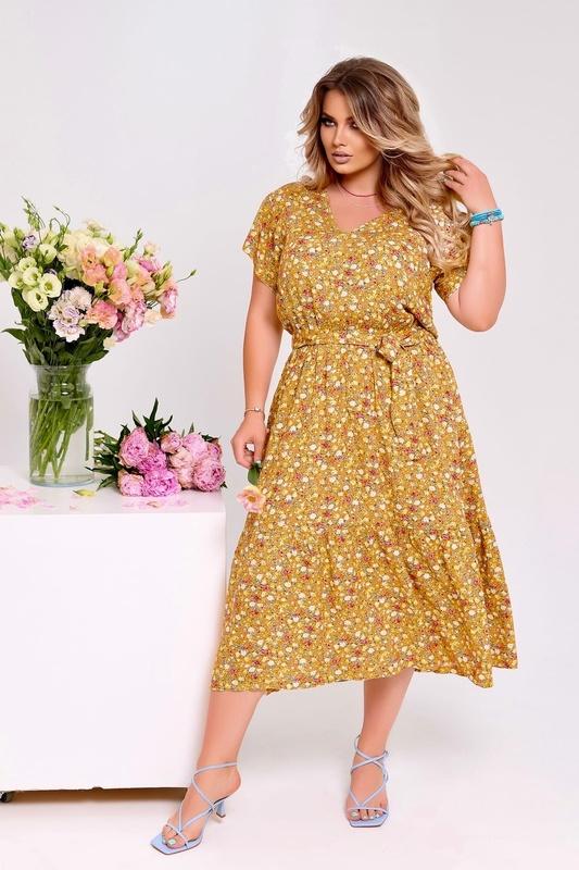 Ткань: штапель Длина: 126 см Длина рукава: от горловины - 26-28 см Рост модели: 170 см Аксессуары: пояс в комплекте Дополнительная информация: на талии резинка Сезон: лето