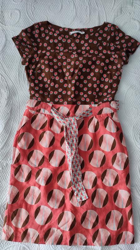 в идеальном состоянии отличное платье с натуральным составом ткани: лен/коттон. подкладка коттон. Произведена в Болгарии. отличное сочетание цветов: коричневый, розовый. пояс атласный. есть карманы. сзади двойная шлица. удобно будет ходить. замеры по запросу. запрашивайте, пишите- ответьте. оплата на карту без возврата и кнопки "купить". смотрите другие Мои лоты. много интересного для взрослых женщин и девочек.
