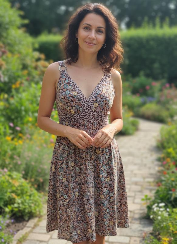 Легкое платье испанского бренда FORMULA JOVEN, производство Испания. В составе 95% вискоза, 5% эластан. Длина 80 см. Красиво ложится по фигуре.