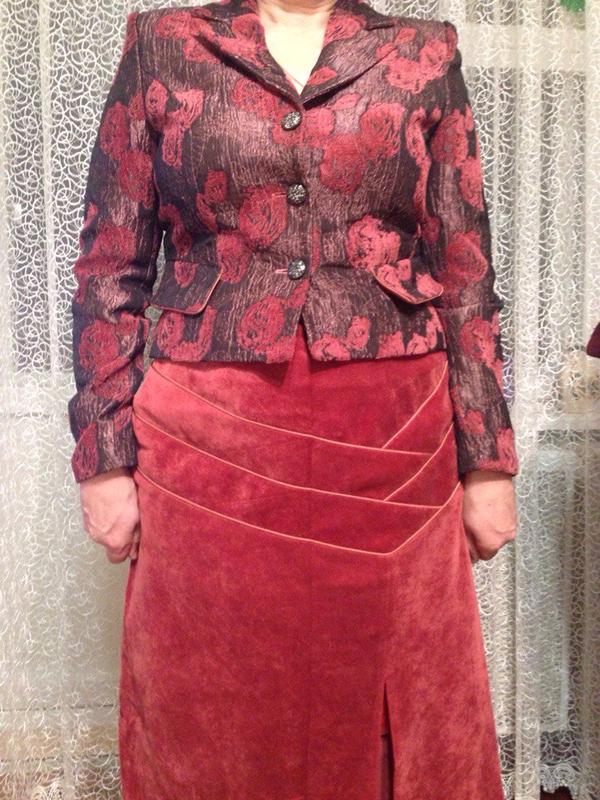Очень красивый юбочный костюм в отличном состоянии. Одет был всего несколько раз. Размер: 50 (замеры предоставлю по запросу, на бирке указано 170/100/108)