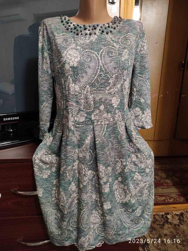Нарядное весеннее платье. Длина 90 см, ПОГ 47-48 см, ПОТ 41 см, поб свободно. Размер 48. Ткань плотная, тянется. Фото плохо передаёт зелёный цвет.