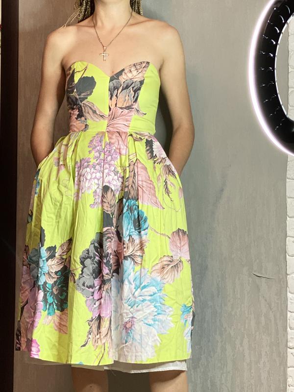 Корсетное платье на подкладке платья в цветочный принт ASOS, S. Длина ориентировано 100см, ПОг 39-44см, ПОТ 32-34см, ПОБ 95см