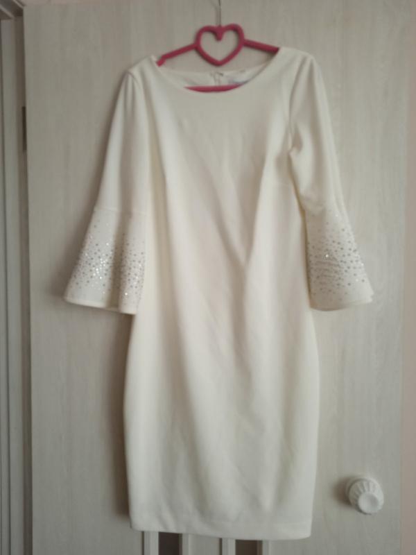 Красивое, удобное платье белого цвета, с блестками на рукавах. Размер S - M