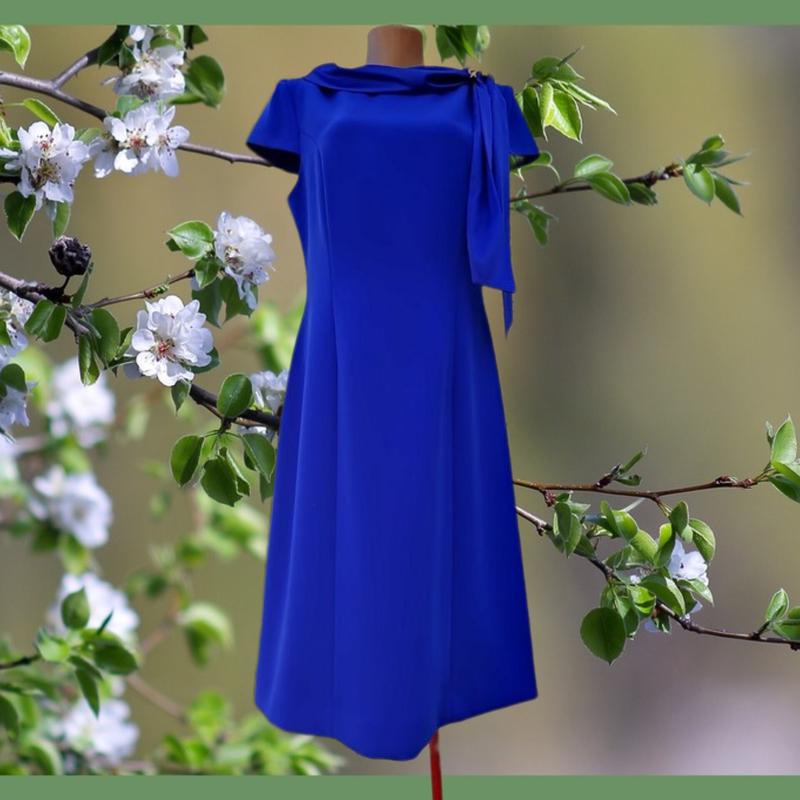Женственное платье элитного бренда из вечерней коллекции, которое подойдет для любого важного события, в которой все взгляды будут только на вас. Рукава короткие. Платье застегивается на потайную молнию сзади. Вырез горловины широкий, шелково-атласный воротничок. На платье есть вертикальные вытачки благодаря чему образ будет более изящен. К платью необходимо добавить элегантные босоножки или же туфельки. Замеры готового изделия: Залишок!!! Размеры: 40;42(Синий цвет) 📍Замеры размера:40 ПОГРУДЕЙ -44см Талія -40см ПОСтегон-52см Плечи-38см Длина -98см 📍Замеры размера:42 ПОГРУДЕЙ -46см Талия -42см ПОСтегон-54см Плечи-40см Длина -99см