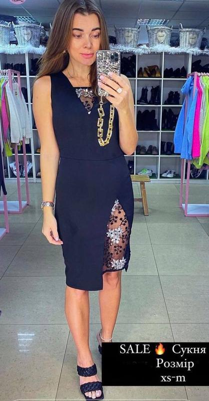 Продам нову чорну сукню, довжина міді з оздобленням. Розмір s або xs, деталі в приват.