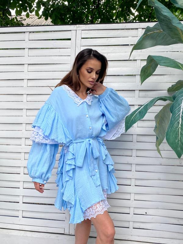 Арт 450 Сукня Anastasia Повітряна сукня в стилі орнаментів прикрашена мереживами Легке та не вагоме Тканина: 100% бавовна Розмір: 42-46 Пояс тканинний у комплекті Кольори: беж, білий, блакитний, лаванда, лайм, малина, чорний
