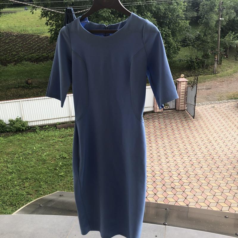 Платье карандаш голубого цвета, очень красиво подчеркивает фигуру, в состоянии нового, шелушалась по заказу Размер С ПОГ-40 ПОТ-36 ПОБ-44 Длина-108
