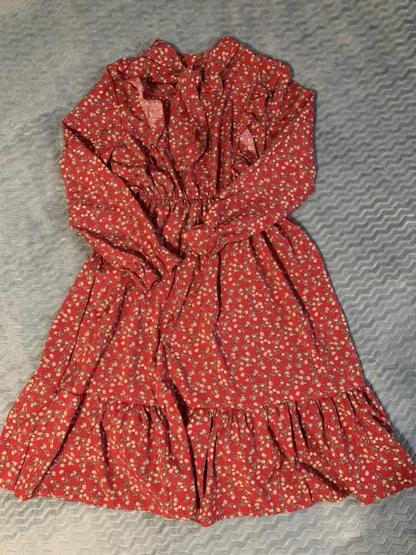 Невероятно легкое, тоненькое платье. На теле очень красиво смотрится. На шее бантик, на руках и поясе резиночки. Длина 95, рукав 56, пот 28 (резинка).