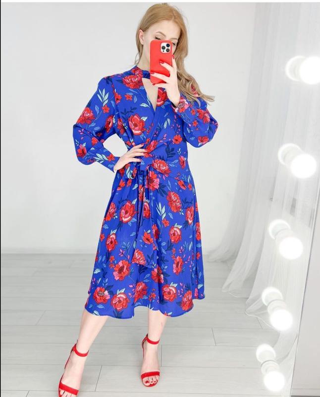 Синее платье в цветочный принт размер 18(XL) 750грн полиэстр полуобхват: груди-босм талия-48см бедра-свободно (60см) рукав-62см длина платья-108см