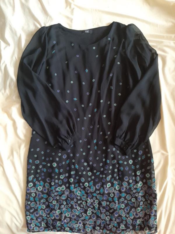 Платье с прозрачными рукавами и на подкладке, размер Uk- 12 указаний, облик новой вещи ПОГ - 47, длина - 87см