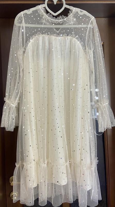 Новое платье с блестками Очень легкое и приятное Ленты-завязки на рукавах и на воротнике Идеально на лето🙌🏻