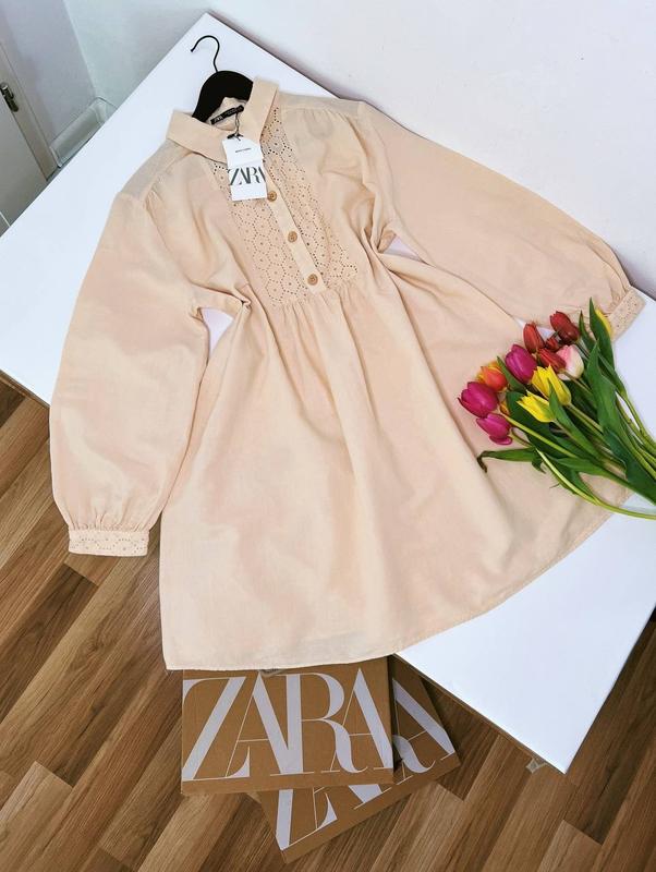 платья zara бежевого и голубого цвета лен 53% и хлопок 47% свободного кроя голубая размера s (длина 87, ширина 55, рукав 54) бежевая размер м (длина 91, ширина 56, рукав 55)