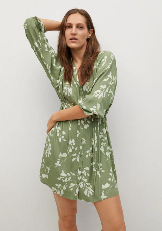 Струящаяся ткань. расклешенное. Круглый вырез, с маленьким воротничком стойкой . Заниженный плечевой шов. Длинный рукав. Регулируемый ремень. Застежка на пуговицы спереди. 100% вискоза Р.М большемерит подойдет и Л плечи 56 ПоГ 64, ПоС 72 длина 98 длина рукава 56