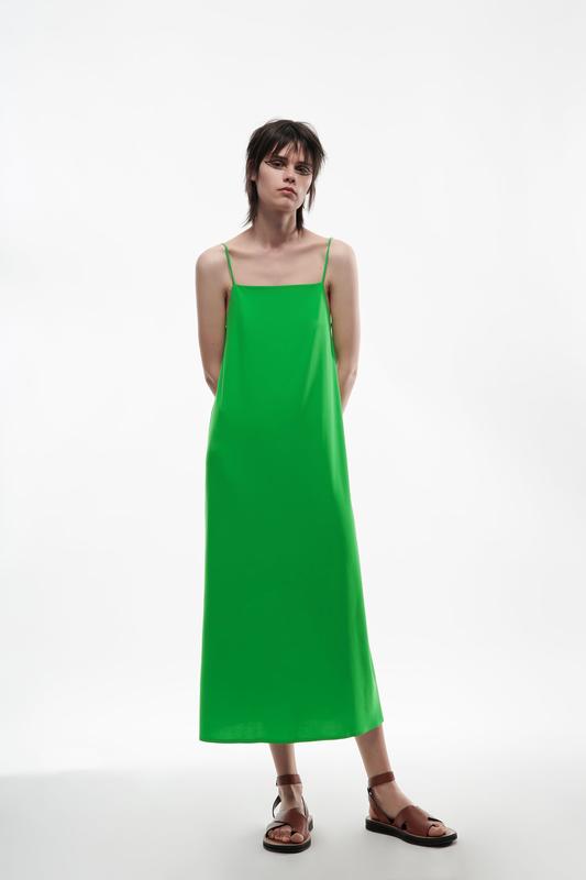 Платье от ZARA, из последних коллекций, размер указан Л. Бретели не регулируются. Очень красивое! Невероятный зеленый цвет. Новое с биркой, торгу нет! Состав: 95% полиэстр, 5% эластан. Замеры: Длина по спинке (зади по центру) 97-98 см; Длина от подмышки по боковому шву 99-100 см; От одной подмышки до другой 43 см + тянется до 60+ см; Пот 49-50 см; Поб 56-57 см.