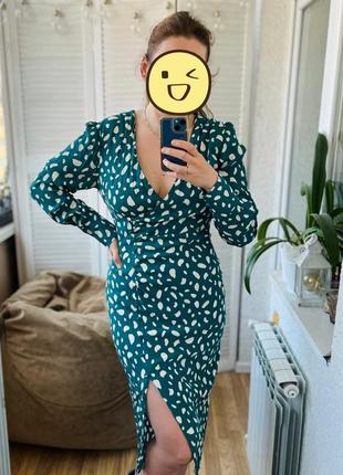 Шикарна сукня актуального крою. Сідає по фігурі. Позаду на молнії. Колір глибокий синьо-зелений. Бірка срізана, але видно що матеріал натуральний (скоріш за все віскоза). Підійде на М-невелику L.