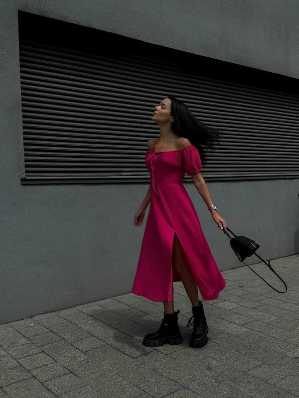 НОВИНКА🇺🇦 🔸Сукня прованс ▪️Модель: 1442 ▪️Ткань: муслин хлопок ▪️Размер: 42-44 и 46-48 ▪️Цвет: белый, малиновый, зеленый 🏷Цена : 700 грн🔥 Супер качество по низкой цене🔥 💬Невероятно женственное платье миди с разрезом и эффектным бюстом💔 Натуральная дышащая ткань. ФОТО РЕАЛ