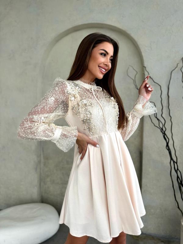 Шикарное кружевное платье украшено сияющими вставками