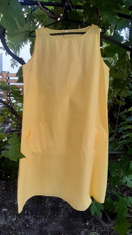 Классное платье в стиле COS А-силуэта с накладными карманами , без рукавов , с круглым вырезом горловины . Цвет ярко жёлтый (камера искажает натуральный цвет) , бирка с составом отсутствует , это коттон , 1:1 как у COS . Платье новое , нет бумажной бирки! На лето просто супер !
