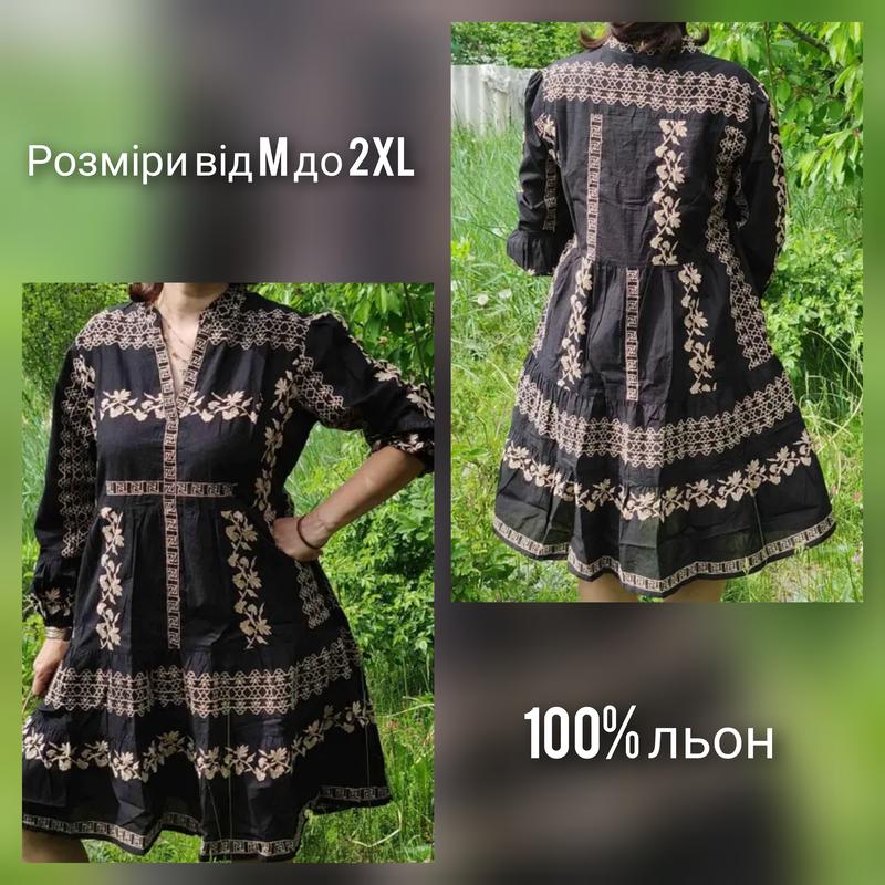 Платье женское вышитое на льне Длина меди Тканина:льон Размеры: M-2XL