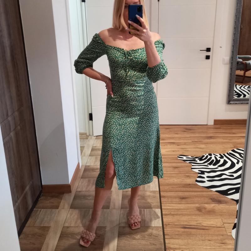 красивая на наш 44, небольшой 46, натуральная ткань, можно носить как на плече так и с приспущенными плечами, состояние новой Одежда на ОГ 90, талию 72, бедра 95 замеры изделия ПОГ 44, ПОТ 36, ПОБ 48, длина 100 см