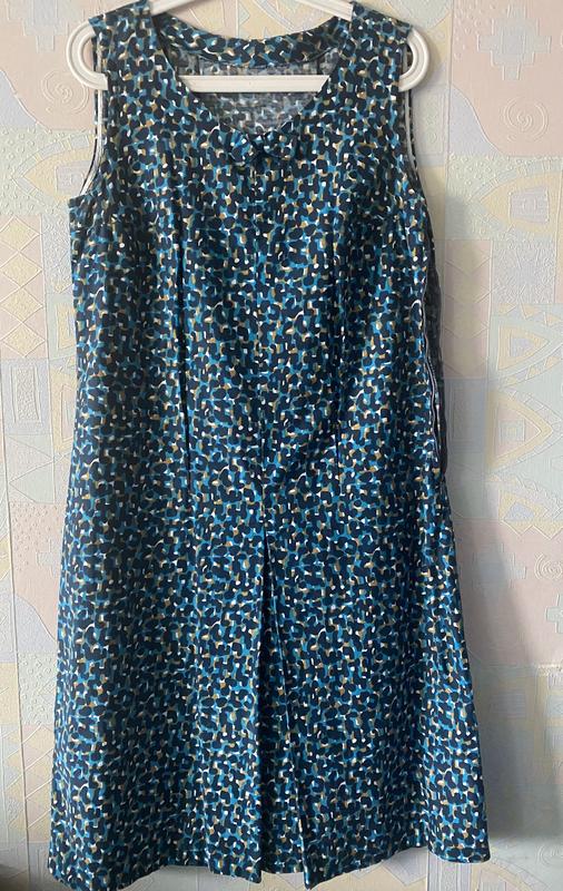 Легкое удобное натуральное платье. Пошита на заказ. Без карманов, молния сломана, необходимо заменить. Пог 48, плечи 38, пот 48, поб 53, длина 105.