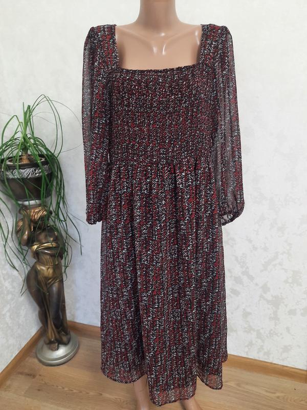 Стильное шифоновое платье-миди с квадратным вырезом большой размер