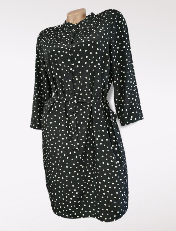Классное платье из шелковистой ткани средней плотности.Не просвечивается.Иде на шелковистой подкладке.По переду застегивается на пуговицы.Рукав- 5/7,также застежка пуговицы.Очень приятно к телу.по сторонам внутренние карманы. пог-50 пот-48 поб-53 плечи-38 длина-92.
