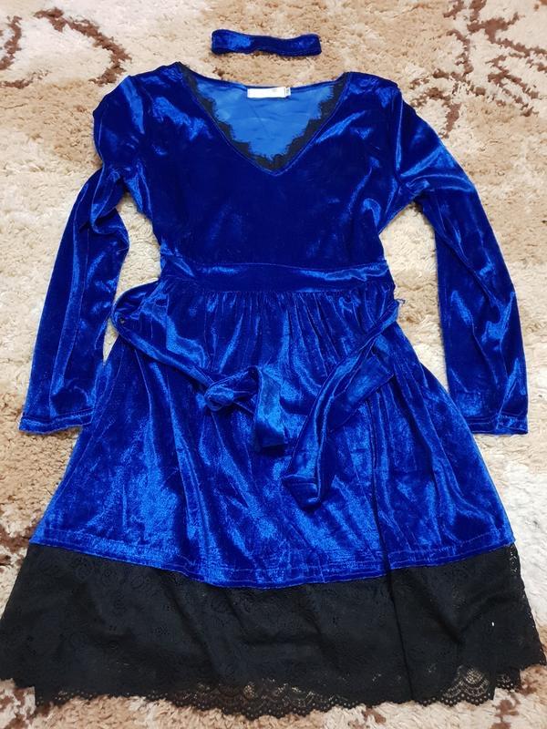 Шикарне велюрову сукню з чокером і ажурною вставкою