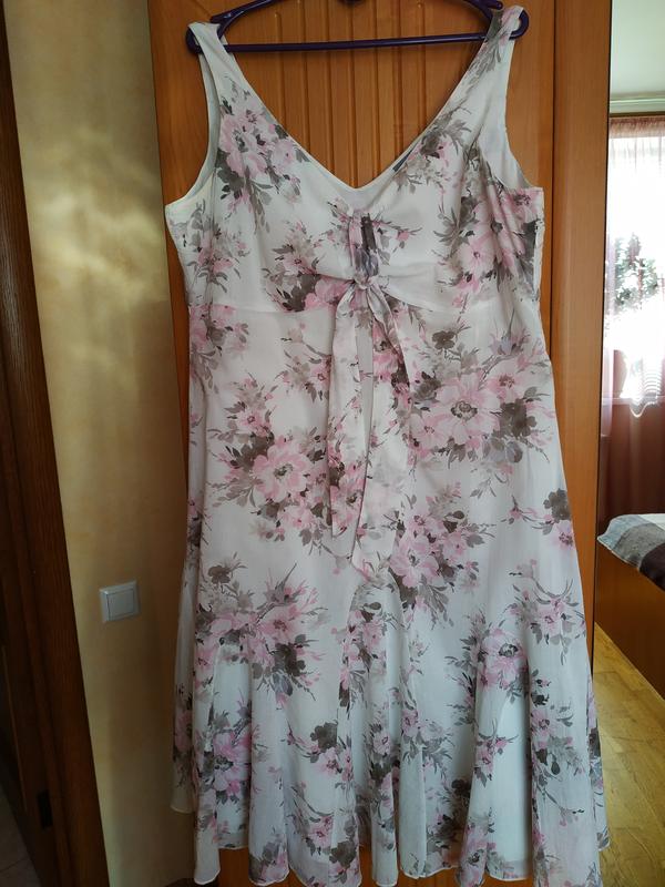 Per una платье платье платье приятное 100% хлопок, миди цветочный принт р. 18 XL, Eur 42 ПОГ 56 см ПОГ под грудью 48 см в бедрах свободно длина 108 см