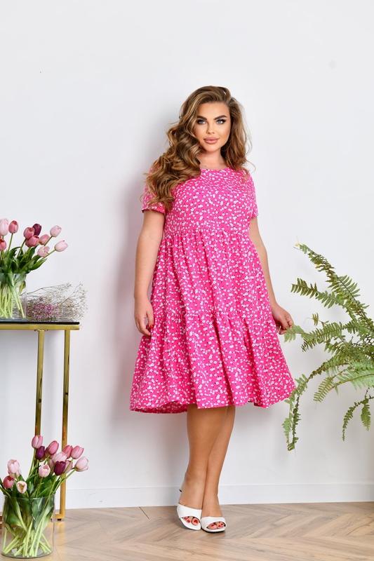 Сукня НОВИНКА💥💥💥 В НАЯВНОСТІ✅✅✅ код 3660 Цена 770 грн. Тканина: софт. Цвет: лиловый, малина, синий, голубой, пудра. Размеры: 52-54, 56-58, 60-62, 64-66. Длина платья: 104, 107, 110, 113 см. Обхват рукава: 41, 43, 45, 47 см. Длина рукава: 16, 17, 18, 19 см. Длина лифа: 41, 42, 43, 44 см. Замеры готового изделия: 52-54 ОГ 112 ОТ 106 ОС 160 56-58 ОГ 120 ОТ 114 ОС 170 60-62 ОГ 128 ОТ 122 ОС 180 64-66 ОГ 136 ОТ 130 ОС 190 Легкое и женственное летнее платье из софта (ткань растяжимости не имеет). Платье состоит из лифа и юбки в два яруса. Вырез горловины круглый, рукав короткий. Карман и застежек нет. Это платье - идеальный образ на летние жаркие дни.