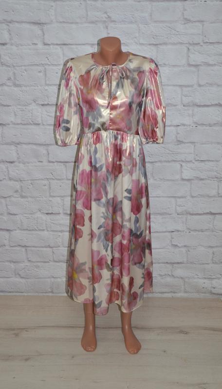 Платье свободного кроя "H&M" размер-10/38 состав: 97% полиэстер, 3% эластан состояние-новой вещи (рукав-45, подмышки-50, бедро-77, от плеча до талии-38, длина-123)