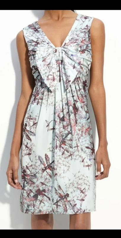плаття Ted Baker з підкладкою, змійкою на спині, м'ятно-блакитне з принтом бабки розмір 36.