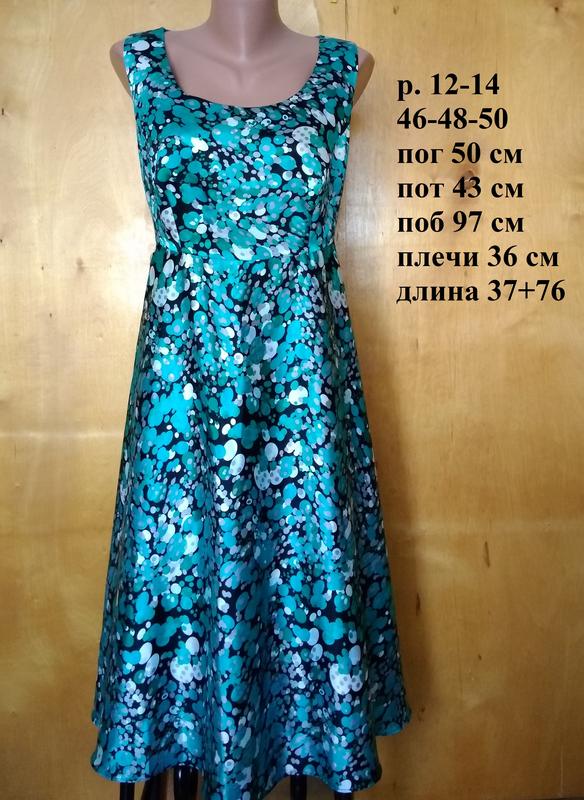Р 12-14 / 46-48-50 нарядное черное платье сукня в синий горох миди ниже колена
