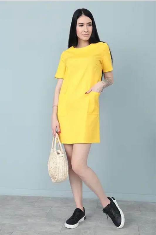 Лето – время ярких цветов, нежных платьев и активного отдыха! Для тезис, кто любит длину мини и свободный крой, представляет модную новинку – летнее платье "Tiffany". Благодаря сочной палитре и простому фасону такая модель будет уместна как на работе, так и на пикнике или неформальной вечеринке. Особенности модели Платье "Tiffany" отличается несколькими особенностями: - прямой крой; - длина мини (до середины бедра или ниже); - короткие вшитые рукава; - кругла горловина; - 2 кармана. Модель "Tiffany" представлена в 4 оттенках: нежном голубом, ярком желтом, базовом капучино и спокойном зеленом. Простой дизайн без украшений и фурнитуры – дополнительное преимущество платья, которое позволяет моднице выглядеть так, как ей хочется. Чтобы создать романтичный или, наоборот, повседневный образ в стиле стрит-стайл, достаточно подобрать подходящую обувь и аксессуары. Изделие пошито из стрейч льна – идеального материала для летнего наряда. Данная ткань имеет натуральную основу и небольшое содержание эластана (не более 3%), что позволяет ей растягиваться в поперечном направлении и хорошо переносить стирку. Стирать стрейч лён рекомендуется при 30-40 градусах в деликатном режиме Характеристики Стиль:Casual Сезон:Лето Длина платья:86-88 см Полуобхват груди:45-49 см Материал:Стрейч лён  Таблица размеров Наличие на складе Цвет42-4446-48Блакитний✓✓Желтый✓✓Зеленый✓✓Капучино✓