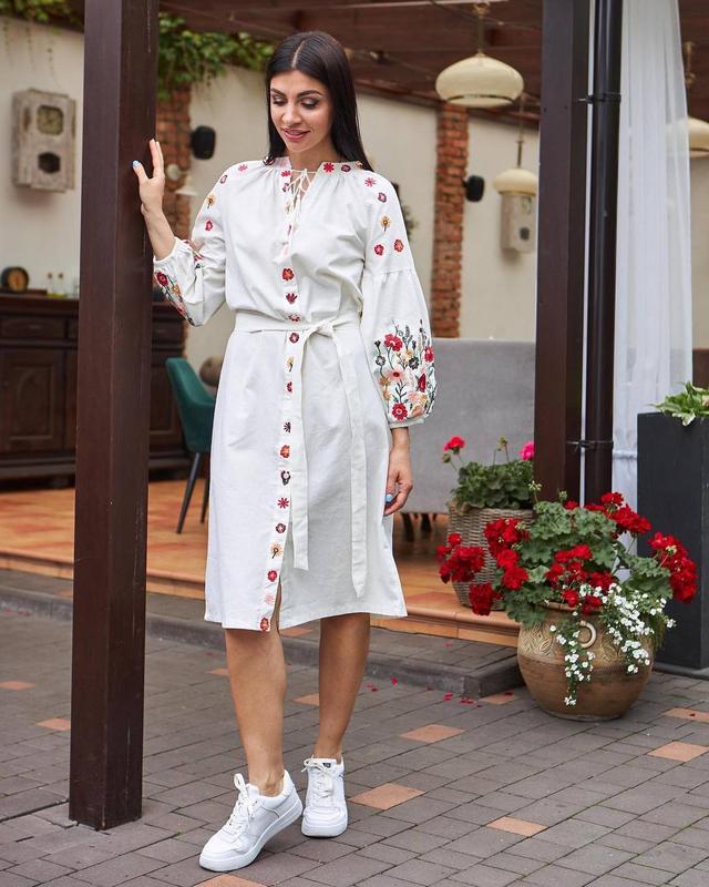 Вышитое платье Размеры: S, M, L Тканина: бавона Цвет: белый (не молочный) Замеры по изделию: S: ОГ 106 см, ОТ 108 см, ОБ 114 см, длина рукава от горловины 58 см, длина платья 105 см М: ОГ 108, ОТ 110 см, ОБ 116 см, длина рукава от горловины 59 см, длина платья 106 см L: ОГ 110 см, ОТ 112, ОБ 118 см, длина рукава от горловины 60 см, длина платья 107 см