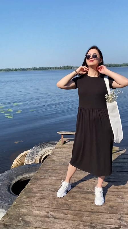 Платье черная летняя трикотаж рубчик, черное платье миди женское ниже колен