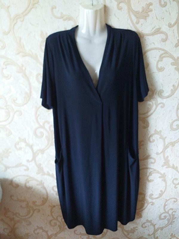 Довжина 108см, довжина рукава27см(від горловини 40см),п.о.г.55см, п.о.ст.67см.Розмір 20.Склад тканини95%поліестер,5%еластан.По боках кишені.