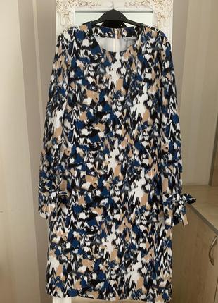Шовкова сукня. Прямого покрою з довгим рукавом на підкладці, по спинці молнія, по низу рукава гарний манжет з завʼязками. Склад верх 100% натуральний шовк, підкладка 100% поліестер. Розмір EUR 36 S. Заміри: Пог 47 Пос 52 Довжина по спинці 91 Довжина рукава 60 Плечі 38. Причина продажу стало замале.
